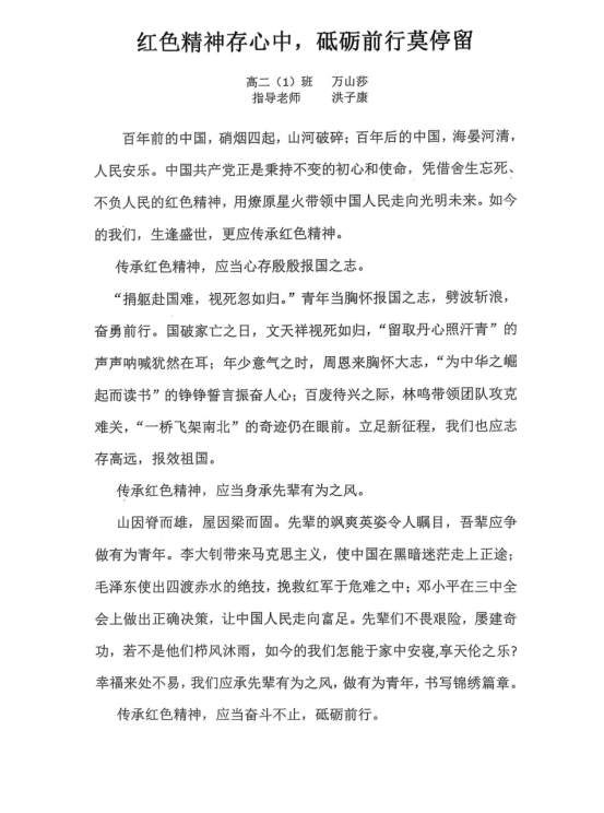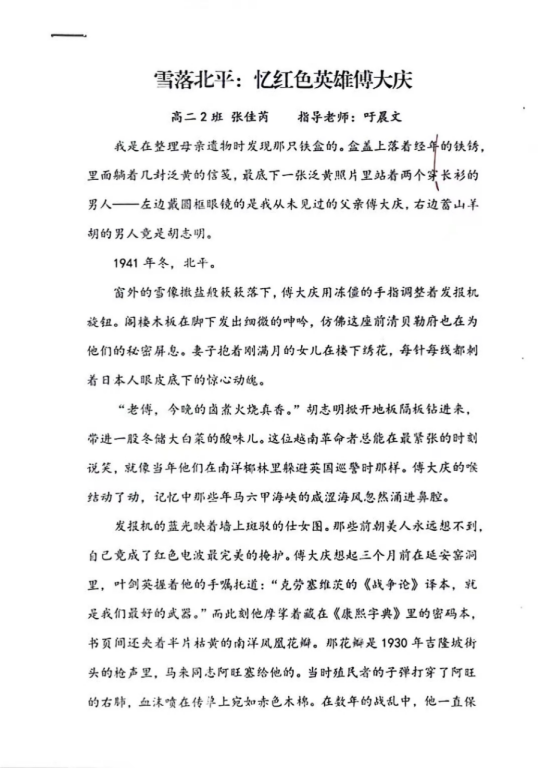 为确保评选的专业性与公正性,语文教师组成评委组,从文章结构、语言表达、思想内容等多方面进行综合打分,最终确定了获奖名单。这些佳作不仅文笔流畅,思想深刻,更以独特视角深挖红色记忆的内涵与价值,彰显了新时代青年学子的责任与担当。